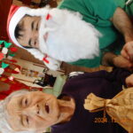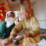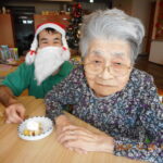 ビンゴが終わったらケーキに飾りつけをしてサンタさんと写真をパシャリ。