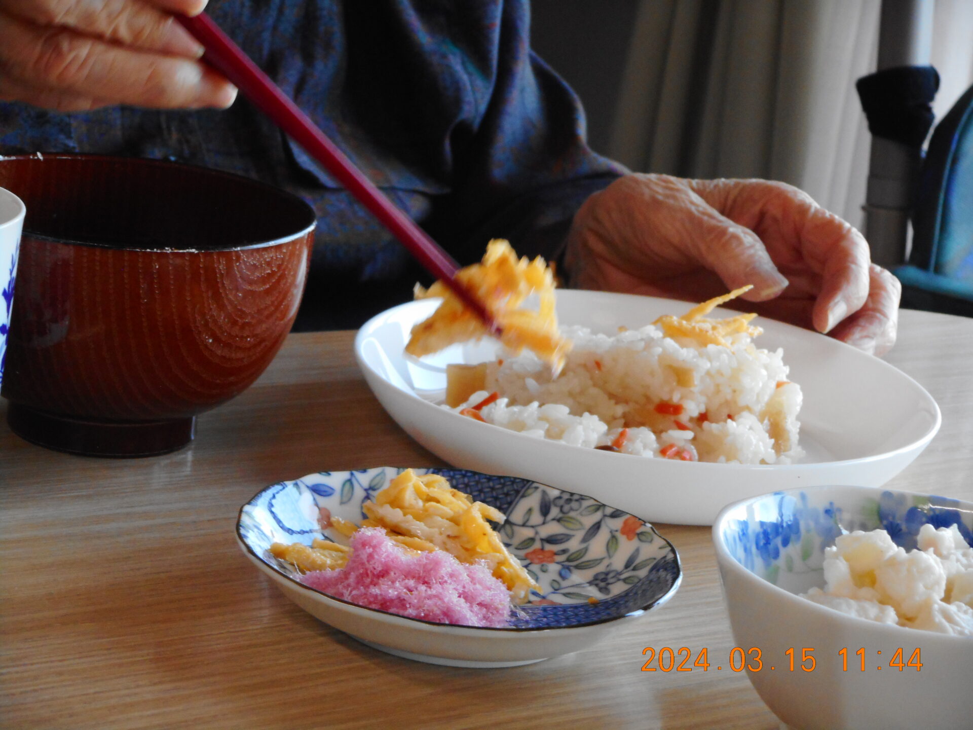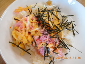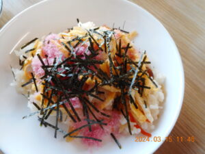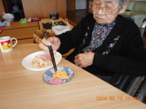 ま花では「雛まつり」行事で、「ちらし寿司」を作りました。