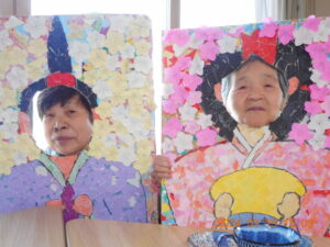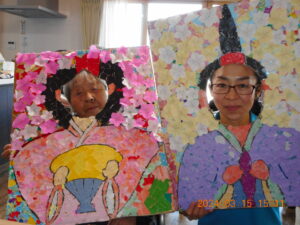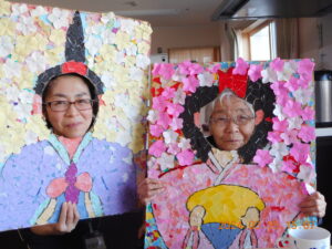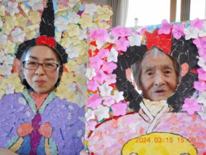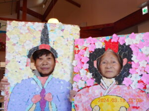 高齢の顔出しパネルでの写真も賑やかに撮りました。