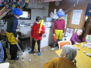 行事のメインイベントである豆まきは、皆さんが楽しみにしていたようです。スタッフだけではなく、利用者様数名にも鬼に紛してもらいました。