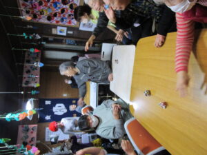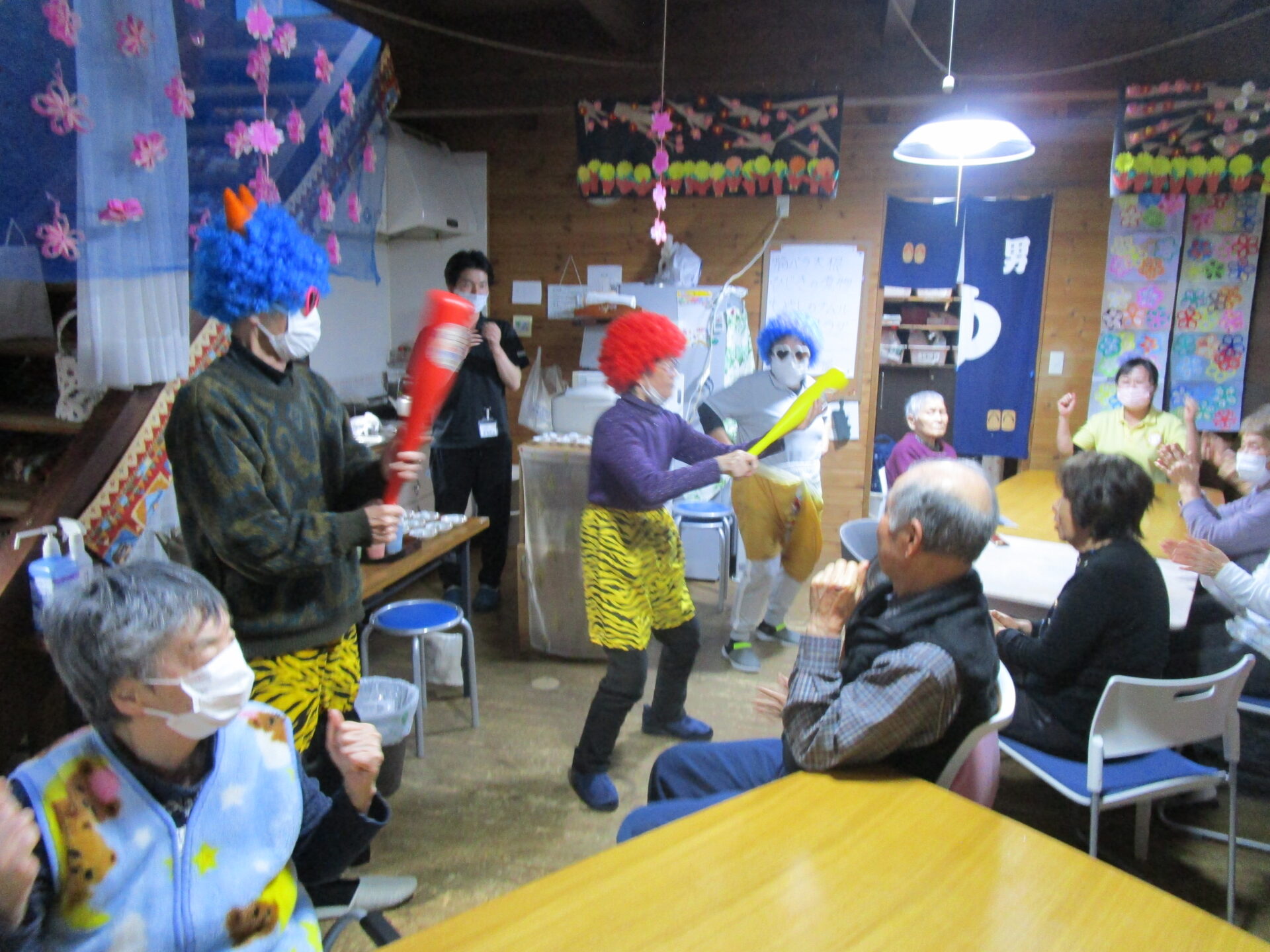 いざ皆さんの前に登場していくと、スタッフ以上に利用者様の方がノリノリに鬼役を演じくれました。笑い声が絶えず鳴り響き、会場中が笑いに包まれましました。スタッフも思わず笑顔になるほどです。