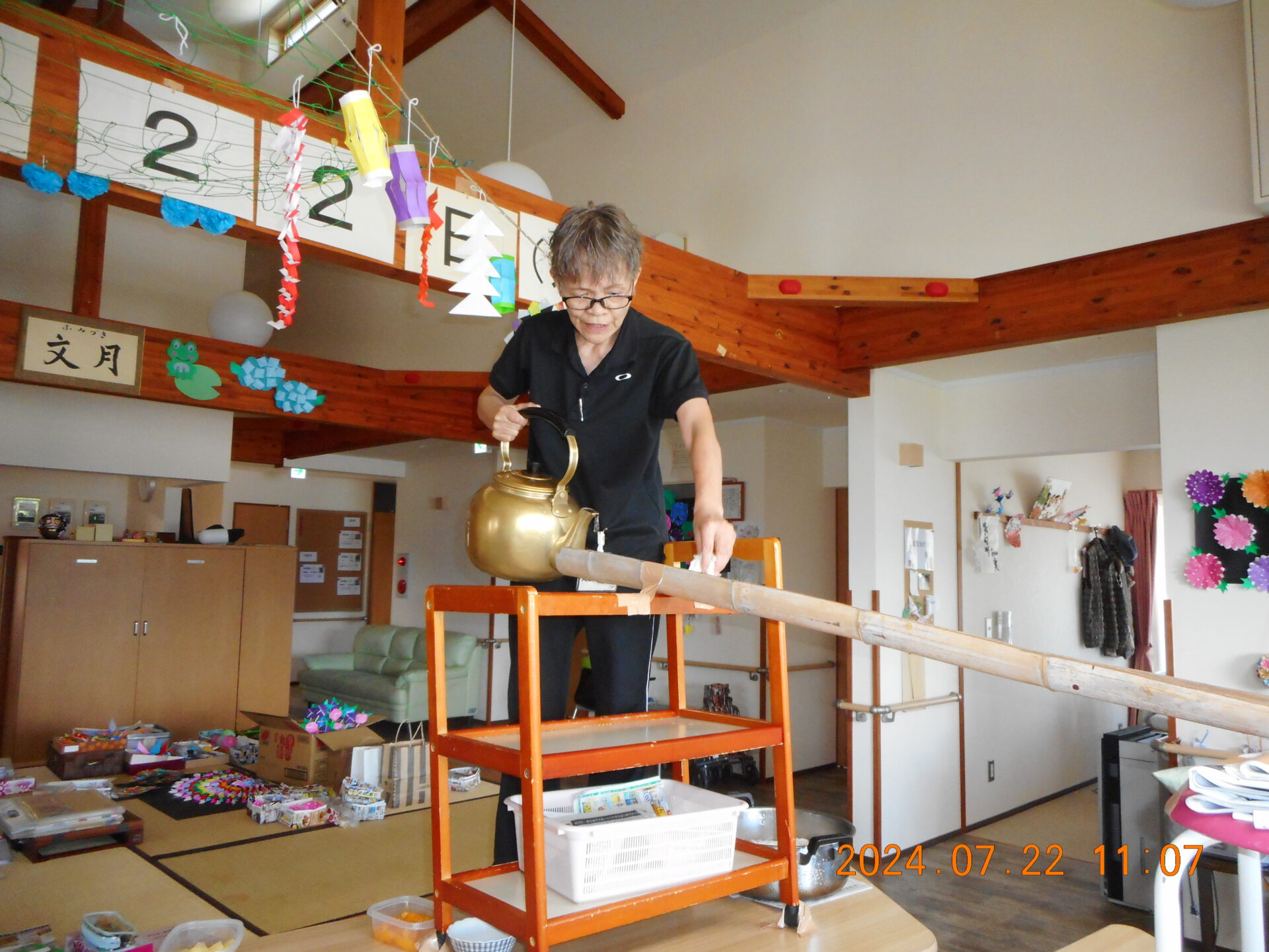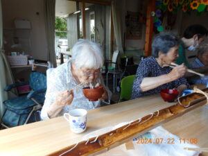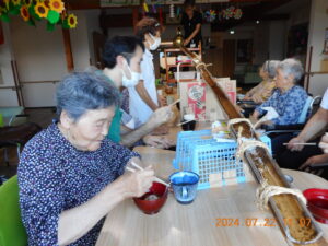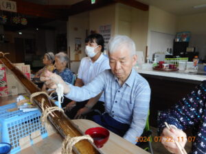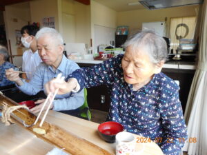 先日ま花恒例の「流しそうめん」をしました。