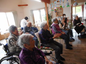 歌謡ショーでは利用者様が知っている歌ばかりなので皆さん一緒に