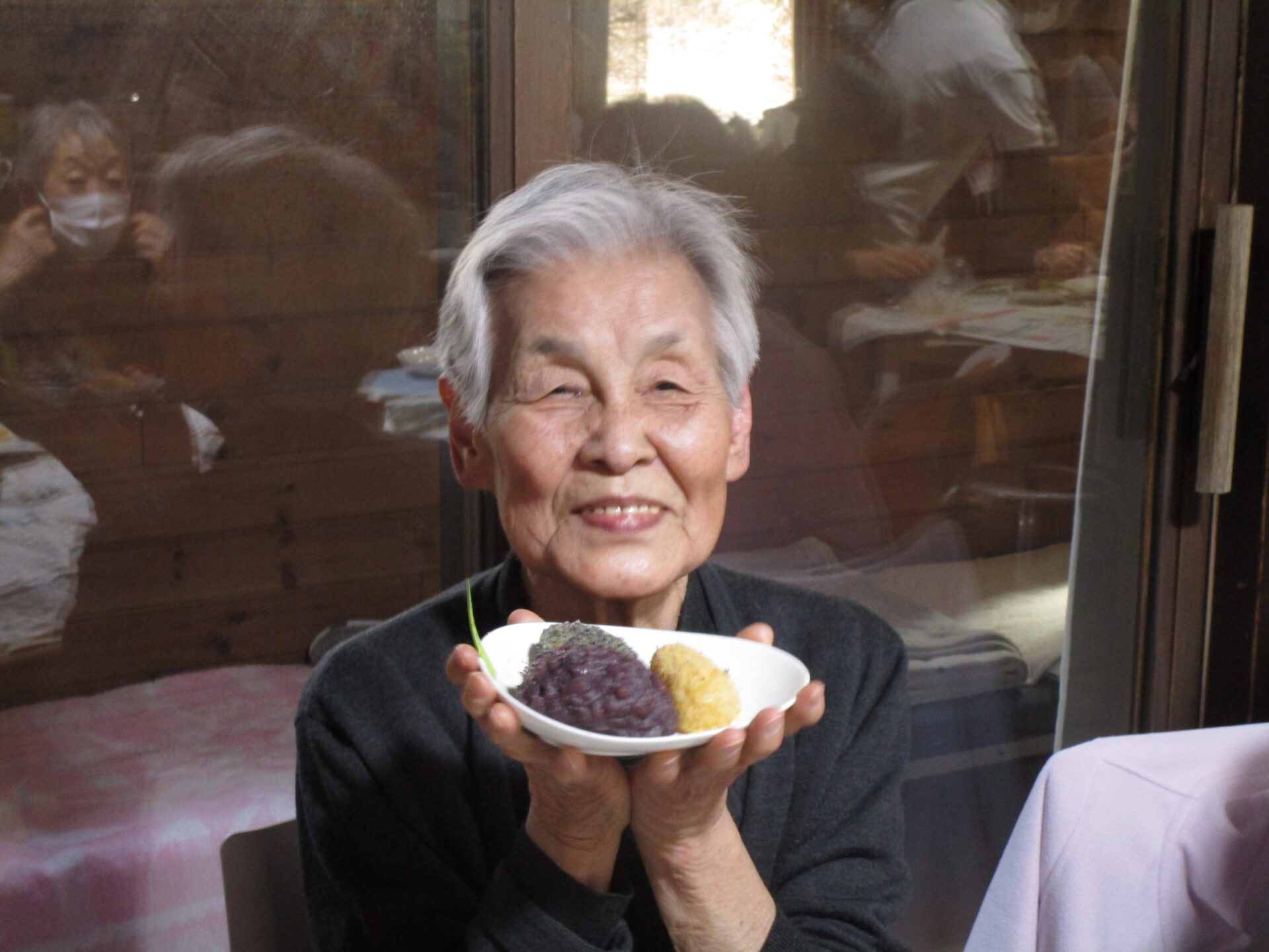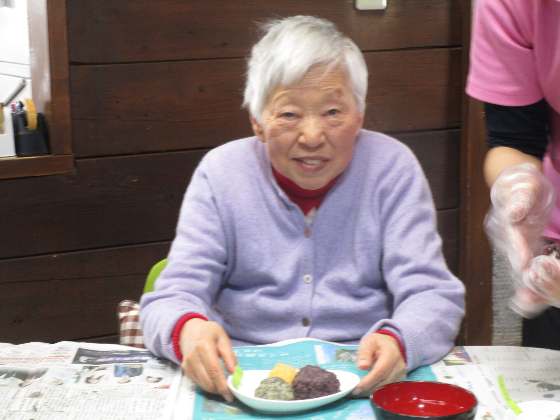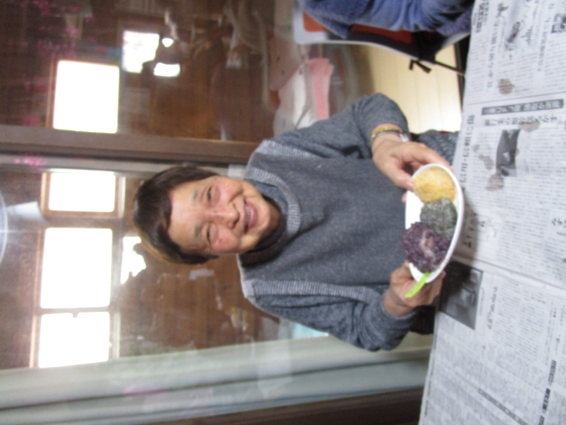 自分たちで作ったぼた餅を「美味しい」