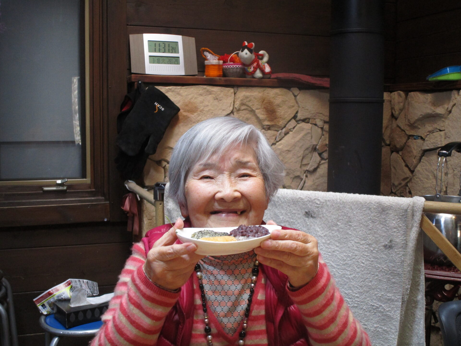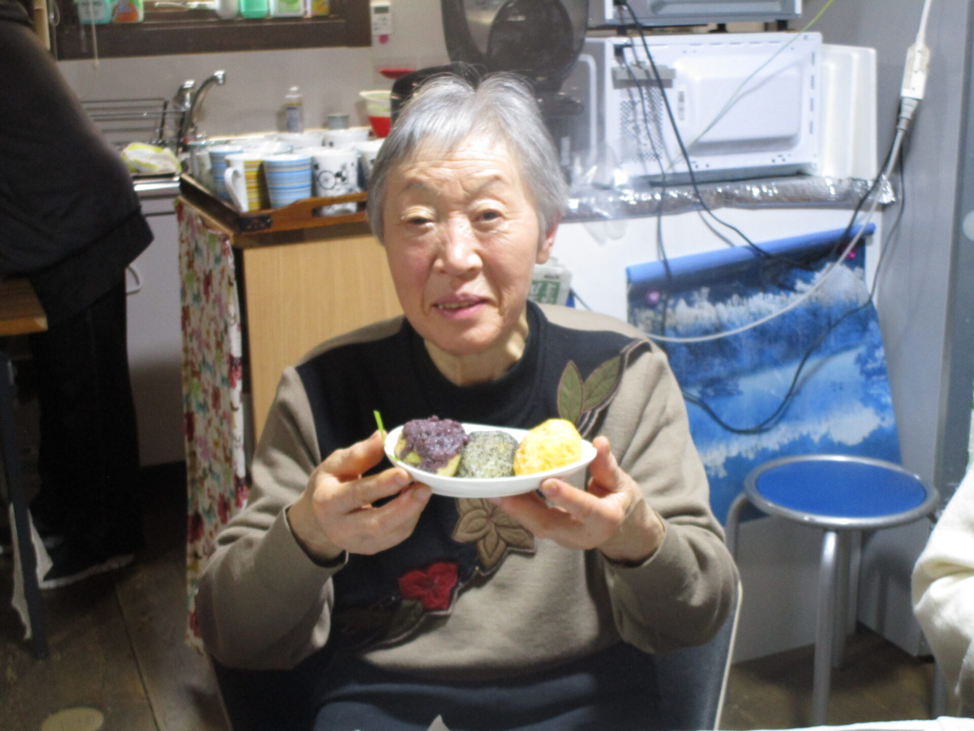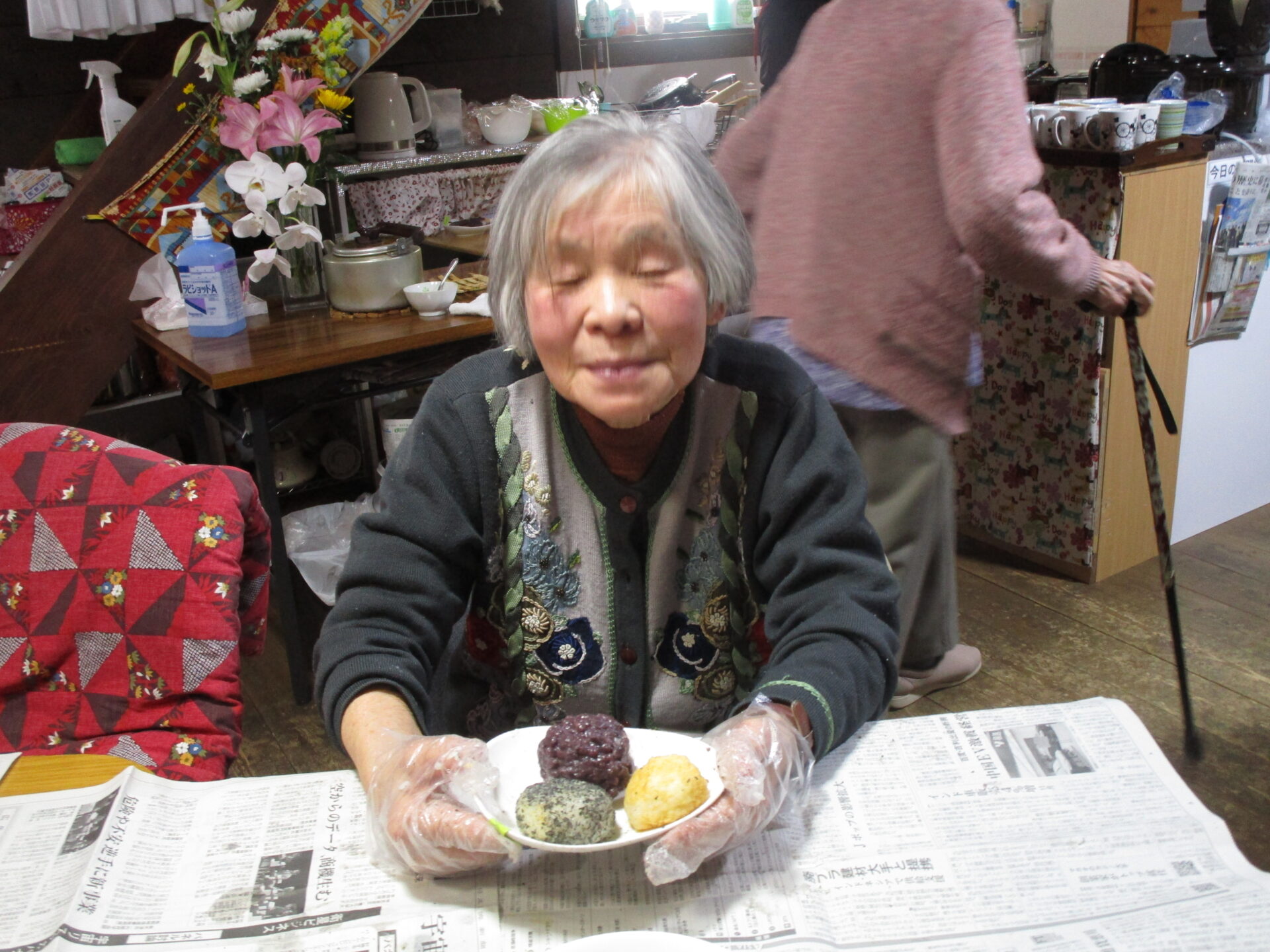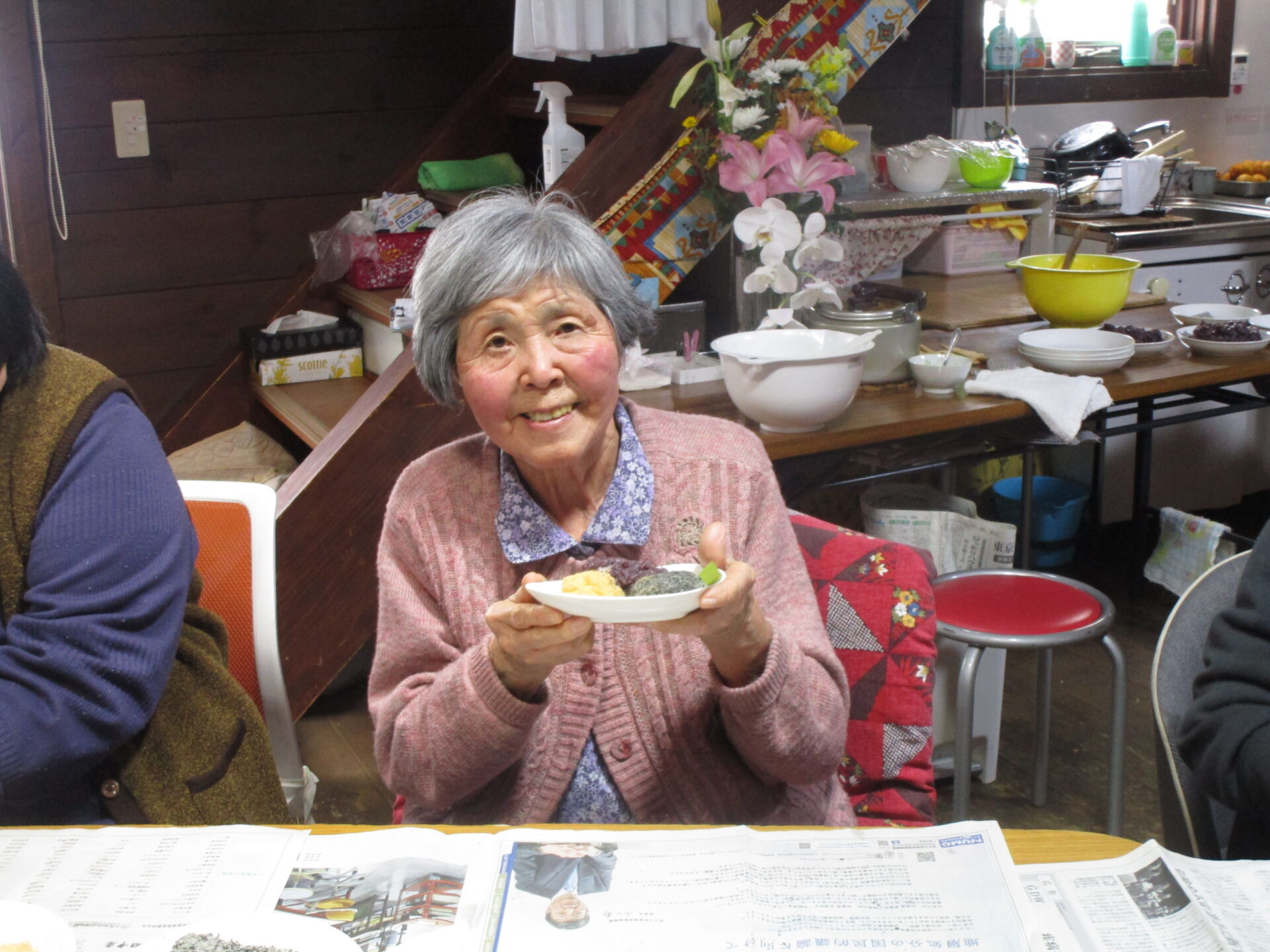 自分たちで作ったぼた餅を「美味しい」