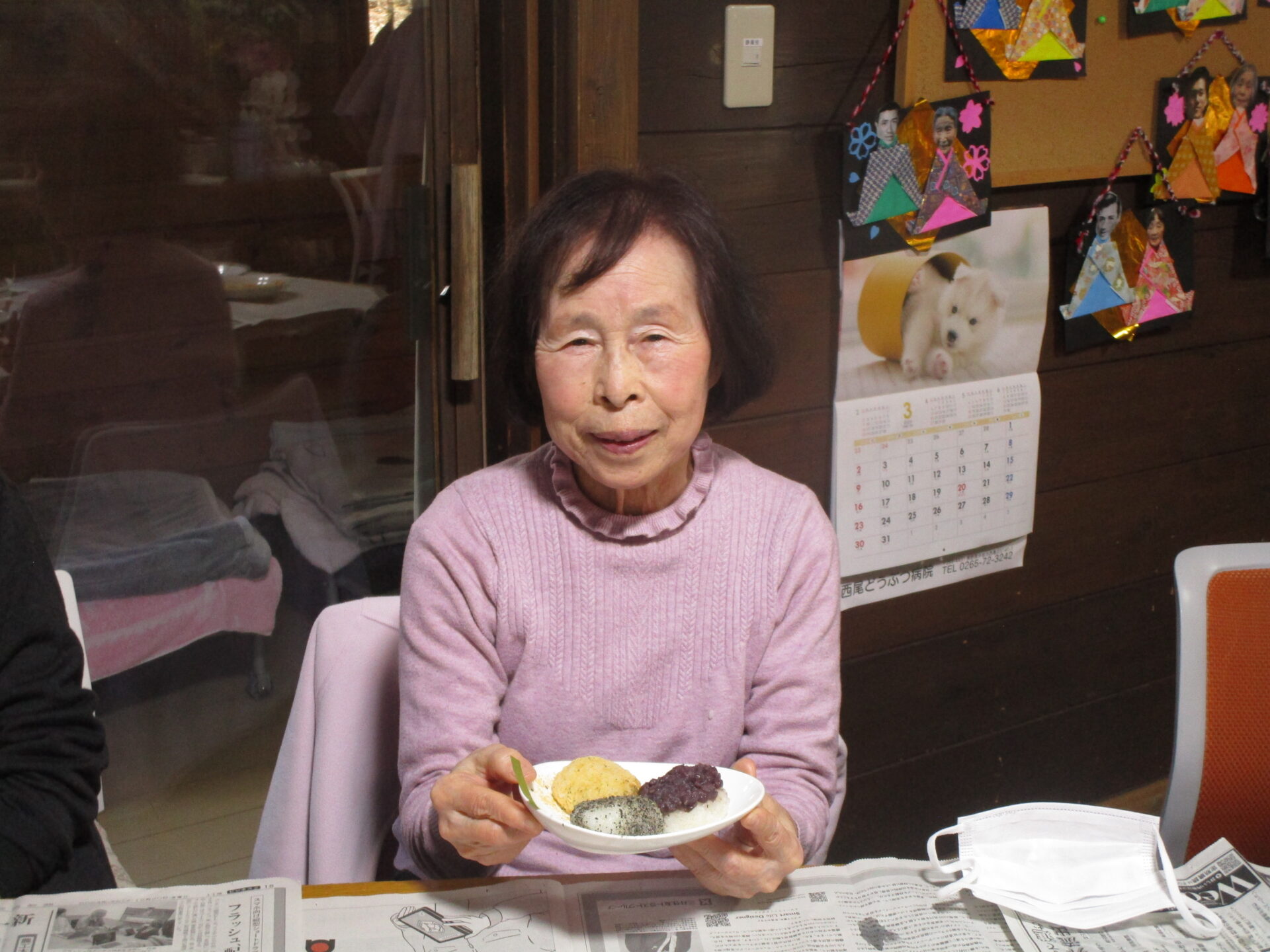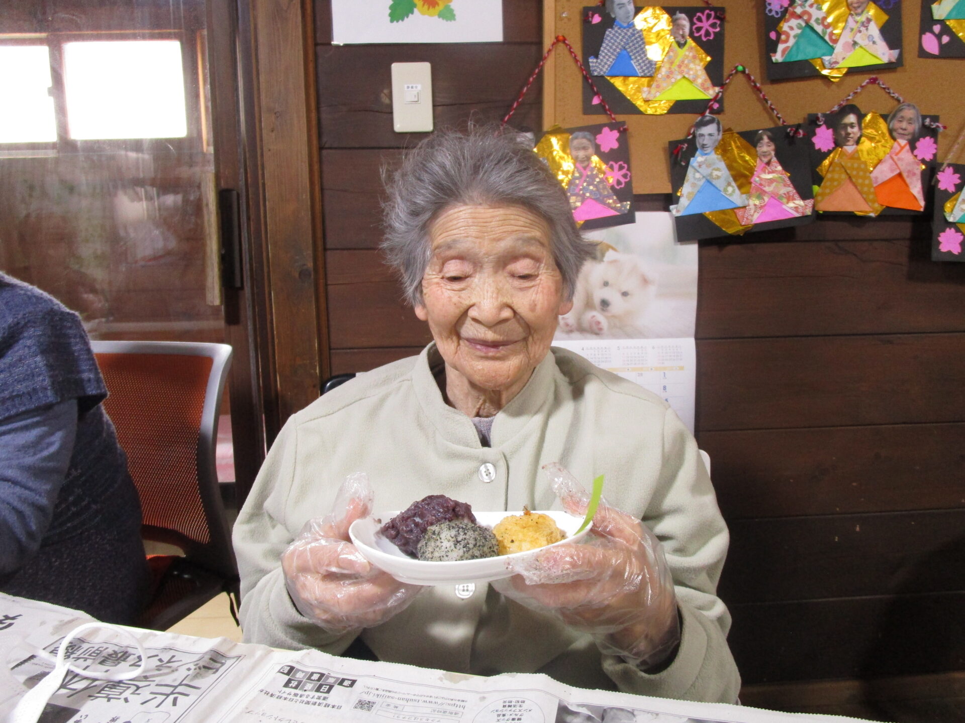 花うたはひな祭りに向け、折り紙でお内裏様と