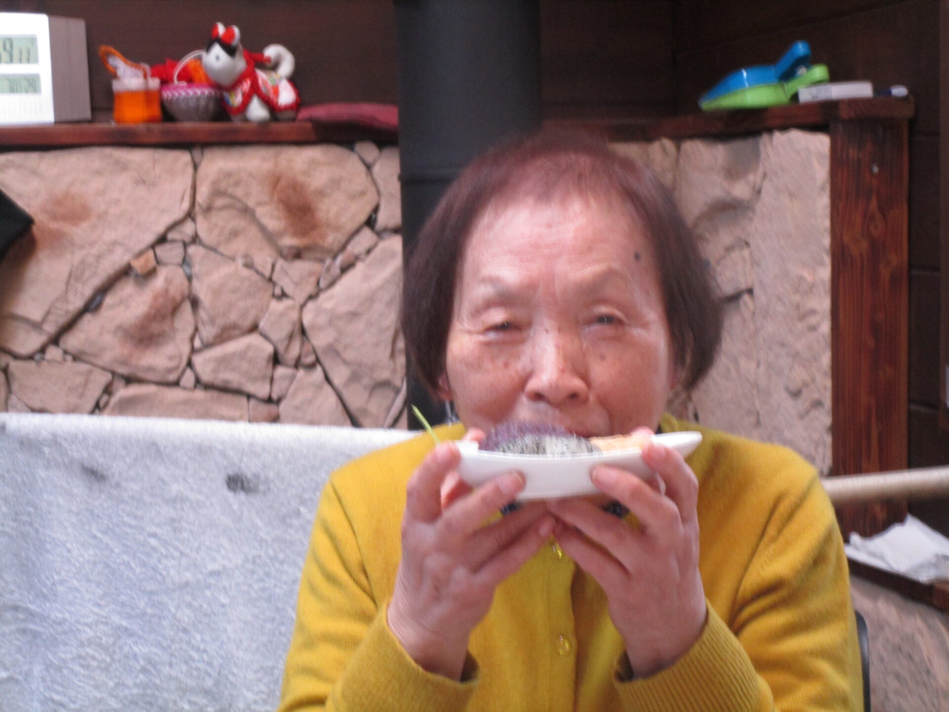 「美味しい」と笑顔で食べながら、