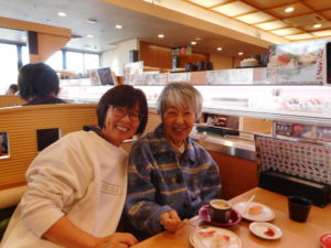 秋の落葉がきれいな中、利用者さん全員と職員で「かっぱ寿司」にお寿司を食べに行きました( *´艸`)