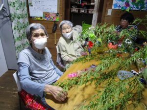 7月に入り七夕飾りを作り、8月7日まで飾りました。
