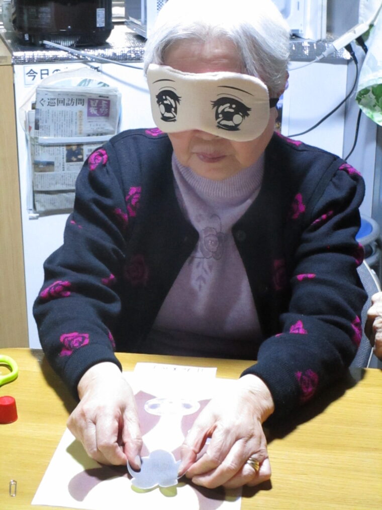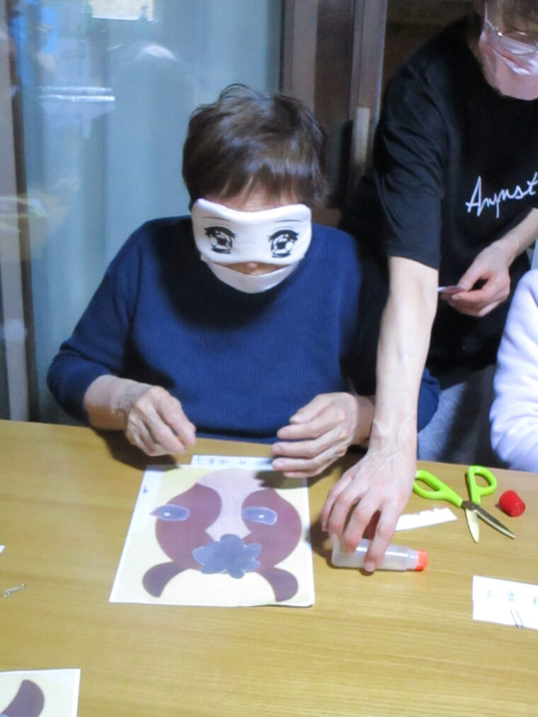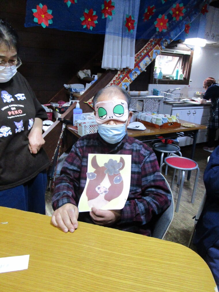 という事で、毎年」恒例の福笑いをしました。