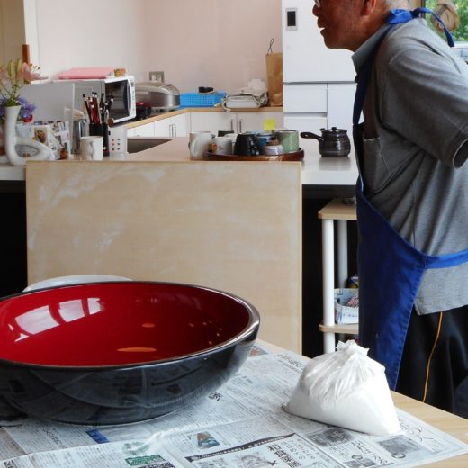 竹の節を利用者さんご家族のご友人に削っていただきました!