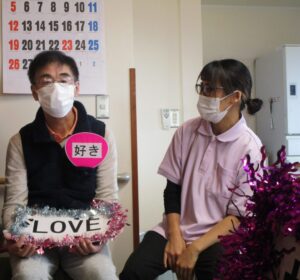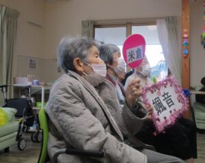11月27日は米倉颯音さんをお呼びしコンサートを開きました。花うたではこの日の為にファングッズを日々のレクレーションで作りました。それを手に持ち大きい声で「はやと」と掛け声をかけました。