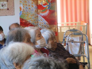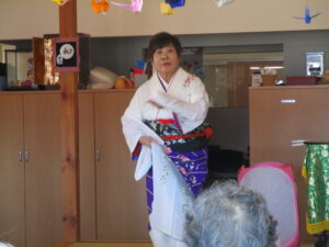 11月14日に伊那マジッククラブの平沢さんよるマジックと生駒流の日本舞踊歴22年の “生駒恵康宜”さん(いつもは美味しいご飯を作ってくれている方です)による日本舞踊をグループホームま花にお邪魔して観ました。