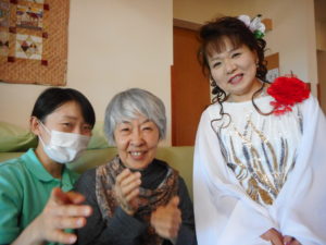 利用者さん、スタッフは、音と歌、綺麗な衣装に大興奮♫