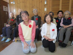 皆さん、お隣の方へゆっくり慎重に渡してました。