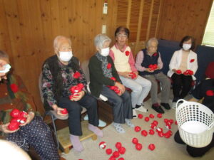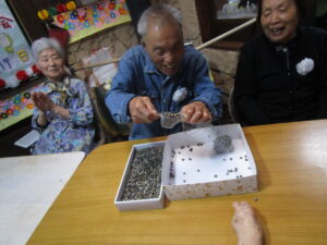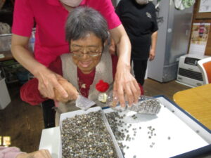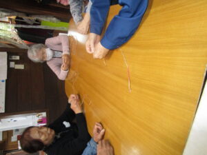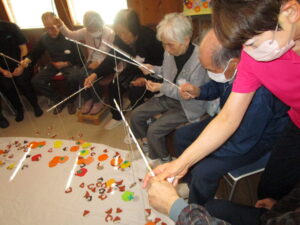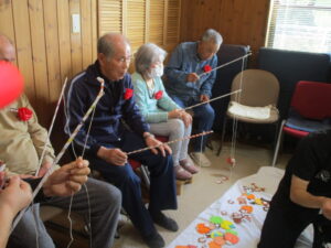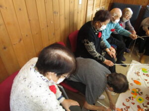 短い紐を選んで「あー😞」と落ち込む利用者様に「大丈夫だよ。」とチームの皆さんが声をかける等、チーム同士で労う姿にほっこりしました。