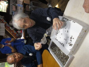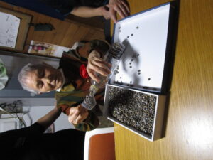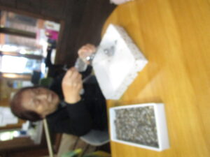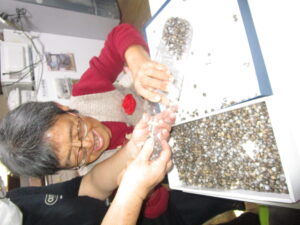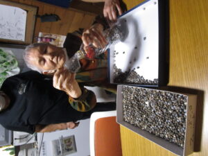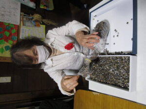 上手な方はペットボトルの口元を手で押さえて石が落ちないよう入れてました。