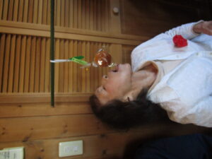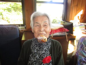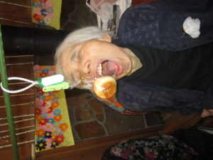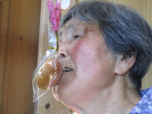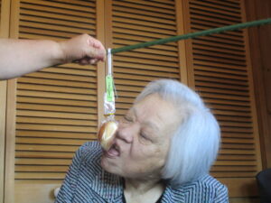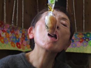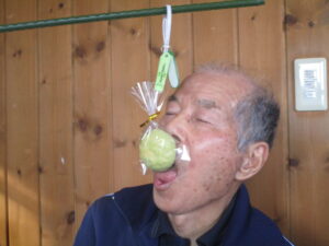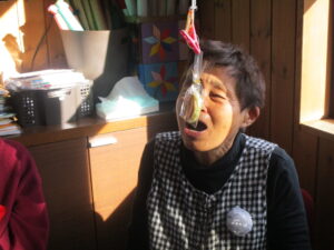 パン食いでは、皆さん吊り下げられたパンを大きい口でくわえて取っていました。