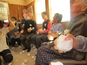 玉入れでは、必死になる余り立って投げる等の皆さん白熱した試合になりました。
