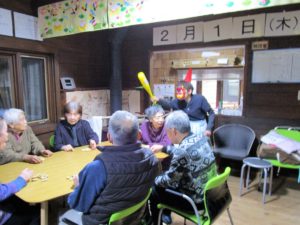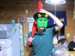 花うたでは、スタッフが鬼に扮して利用者さんに豆まきをしていただきました。もちろん私は鬼役です。