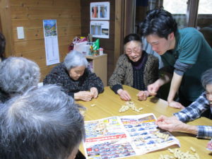 無我夢中で豆をまく利用者さんたちの喜んでいる姿、笑顔で花うたのホール内は「福」で溢れていたように感じます。