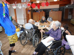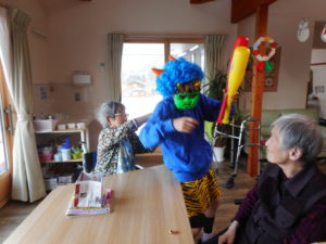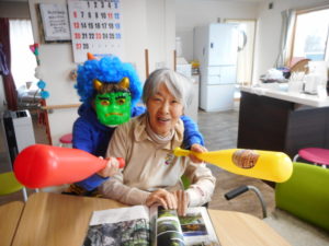 「あれ?青鬼さん一人なの?」と利用者さん。